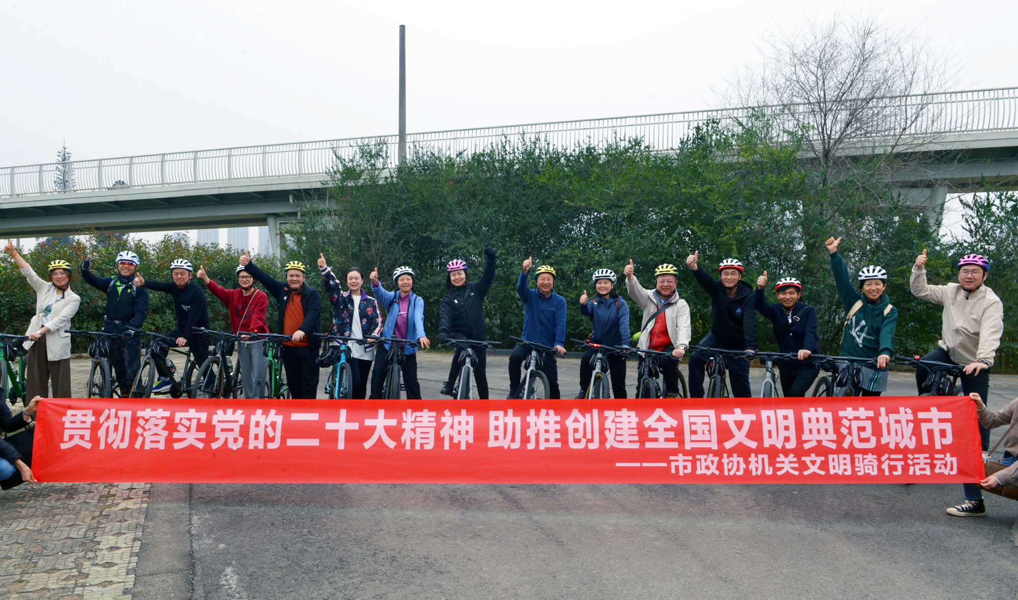 在天府绿道花田湿地,大家领取骑行装备,认真听取骑行须知和注意事项,跟随教练认真开展热身运动后,骑行经过白鹭湾湿地、中和湿地、桂溪公园、锦城湖公园,最终抵达浓园天艺村。一路上,骑行队伍井然有序,大家充分发扬团结互助的精神,用实际行动宣传“绿色低碳、文明出行”的理念,助力全国文明典范城市创建。