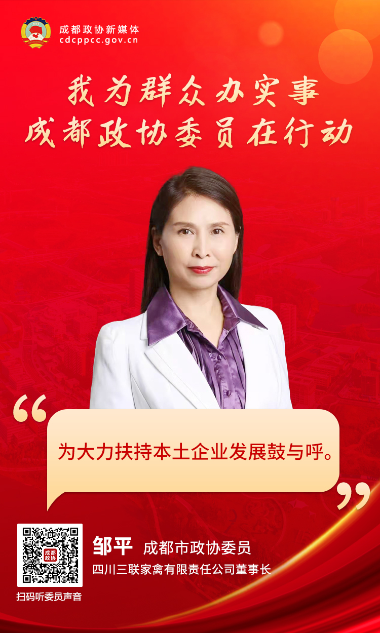 大家好,我是成都市365bet足球官网_28365365体育投注_365体育提现多久到账委员、四川三联家禽有限责任公司董事长邹平。本期为大家分享的是我为大力扶持本土企业发展建言献策的履职感受。